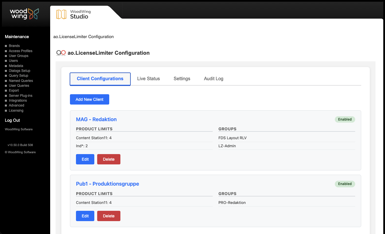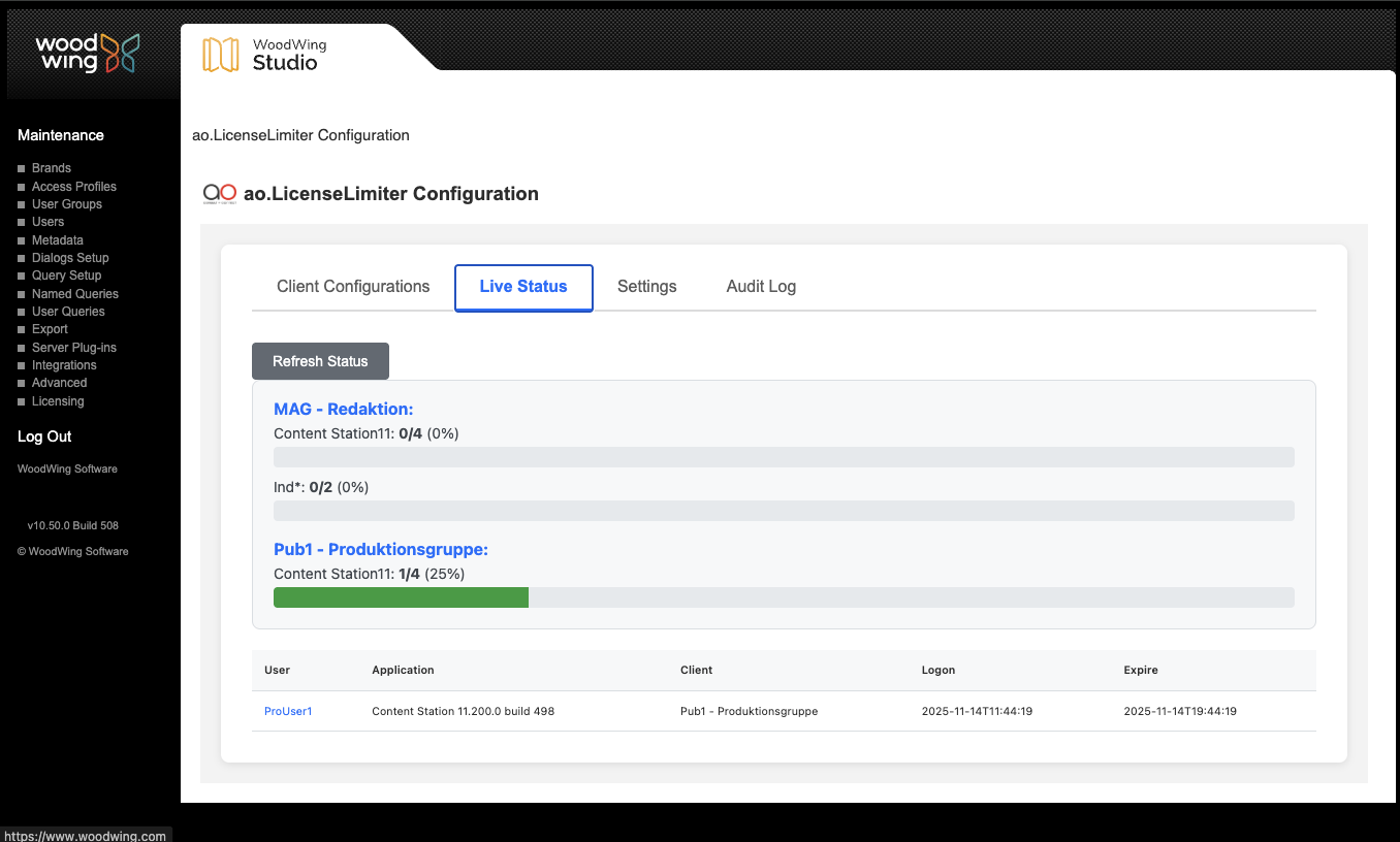 Basierend auf dem wertvollen Feedback unserer Kunden haben wir die Funktionsweise unseres ao.License Limiters weiter optimiert und die Konfiguration nahtlos in die Admin-Oberfläche des WoodWing Studio Servers integriert.